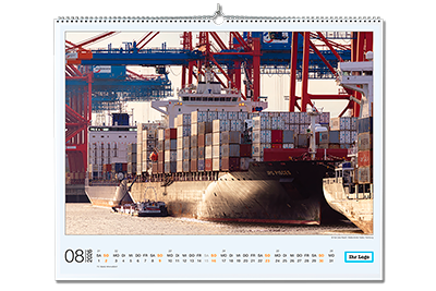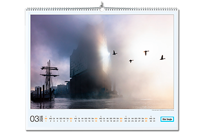 Die Elbphilharmonie, die Eröffnungs-Zeremonie, das Chilehaus, der Hamburger Michel, das Deichtorhaus und die Köhlbrandbrücke. Dazu ist auch in diesem Kalender der Hamburger Hafen vertreten. Außerdem gibt es hier zwei spannende Hamburg-Motive aus der Vogelperspektive.
